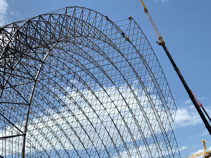 (2)网架加工前应对现场尺寸进行复测,确认无误后方可进行加工、安装;网架制作、运输、安装应遵守《空间网格结构技术规程》JGJ7-2010、《钢网架大连螺栓球节点》JG/T 10-2009、《钢网架大连螺栓球节点用高强度螺栓》 GB/T 16939-2016、《大连钢结构大连工程大连施工规范》 GB50755-2012、《大连钢结构大连工程大连施工质量验收标准》 GB50205-2020。
